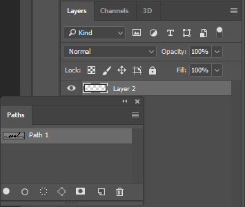 이제 레이어창에서 실제로 선이 그려질 빈 레이어를 하나 생성해줍니다. 그리고 path창에서 좀 전에 그린 path를 선택해 줍니다. 빈 화면에 path가 보여집니다.